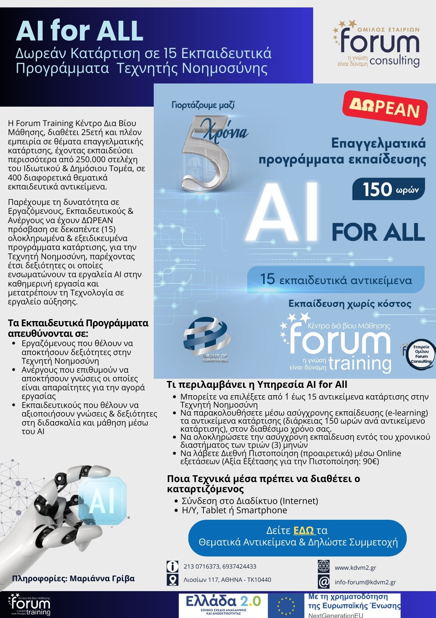 14. Υπεύθυνος Σχεδιασμού και Ανάπτυξης eLearning & Blended Learning με Αξιοποίηση Τεχνητής Νοημοσύνης